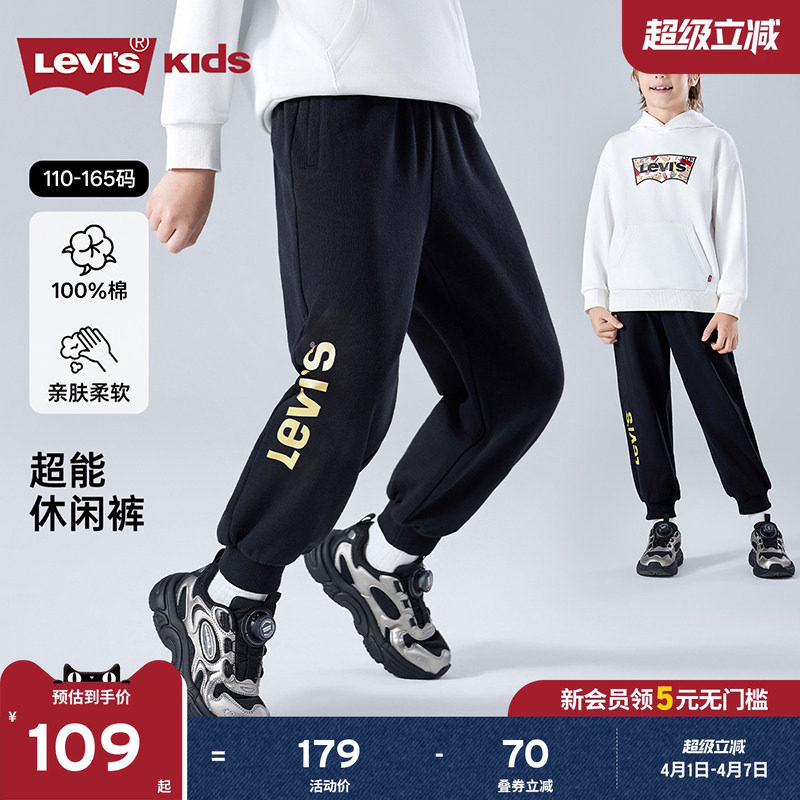 Levis李维斯男童裤子运动裤2026春装新款儿童长裤童装女童卫裤男