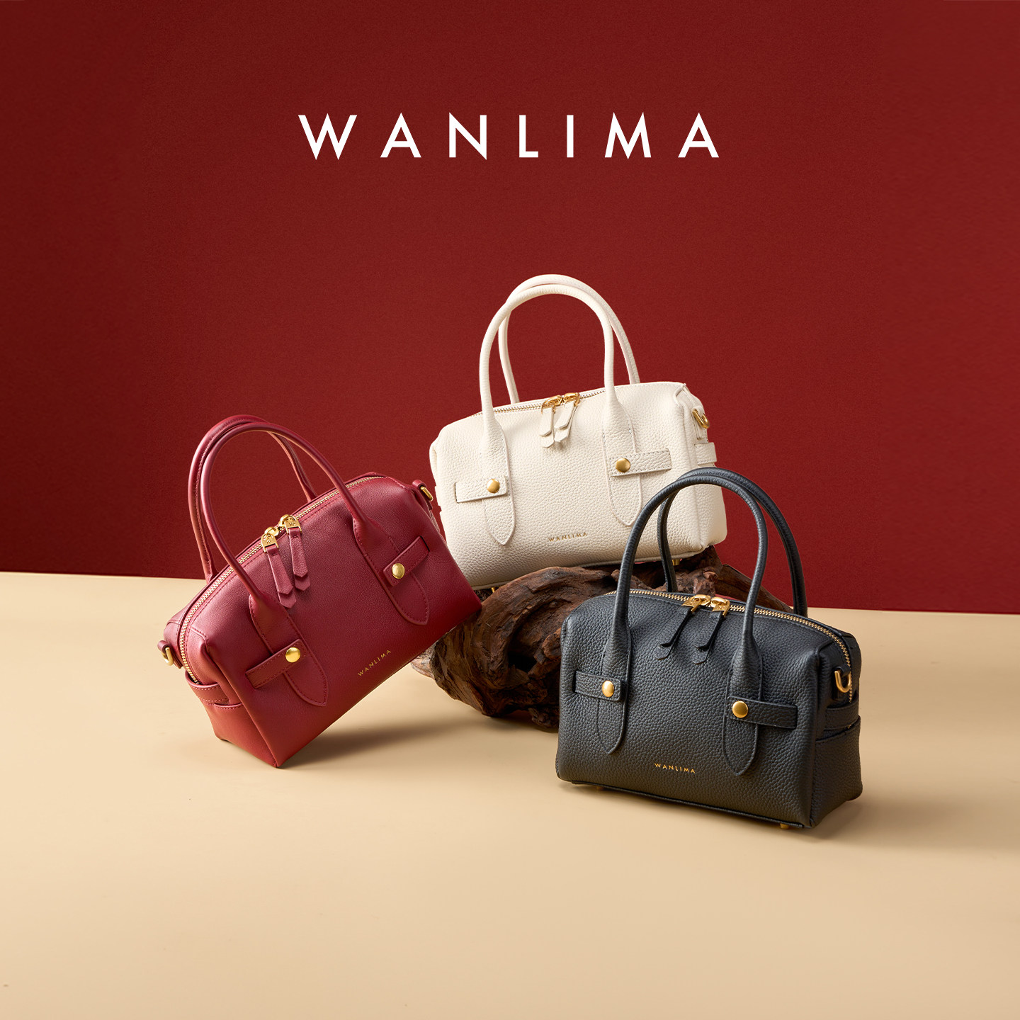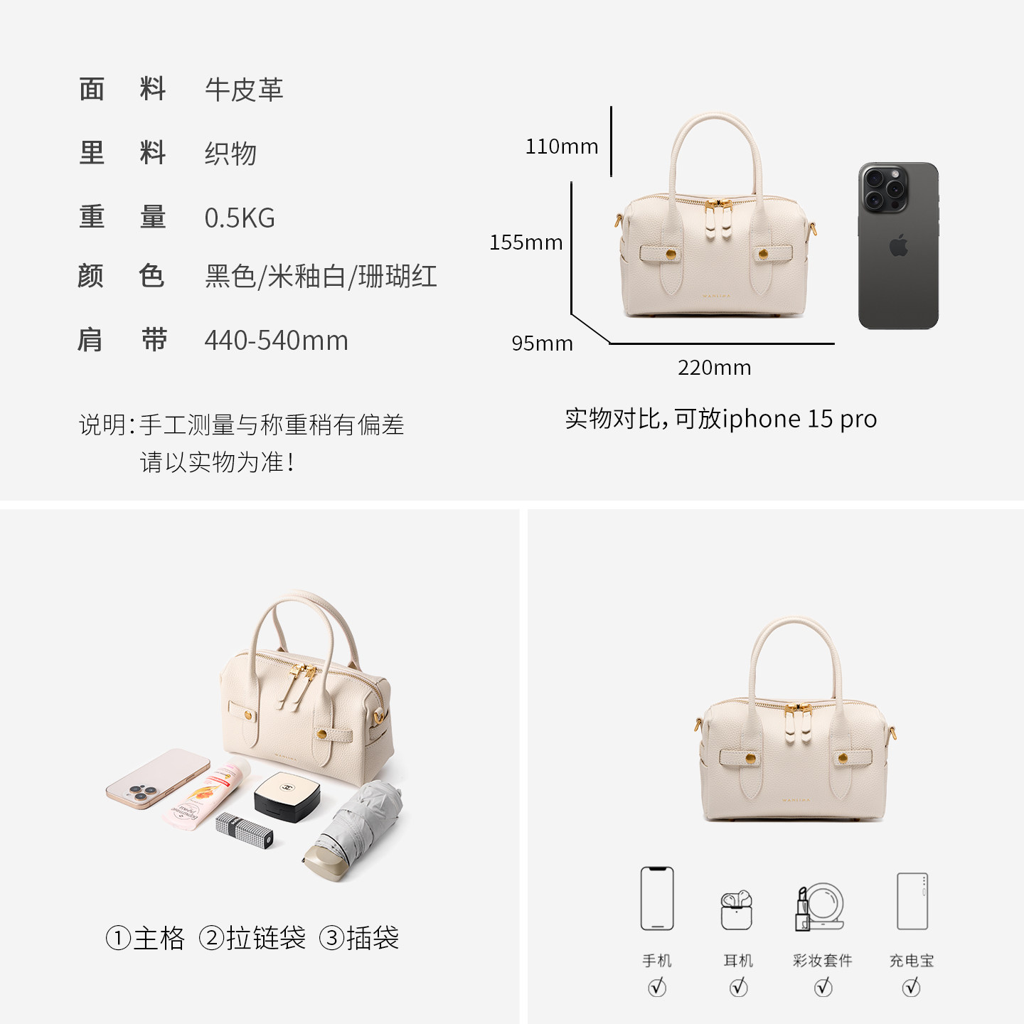 万里马2026年新款牛皮保龄球包小包真皮包短手柄手提波士顿包女包