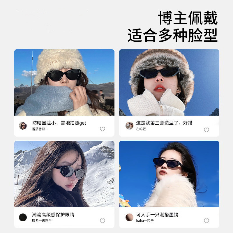 复古猫眼墨镜女防晒遮阳高级感2026新款椭圆近视偏光黑色太阳眼镜
