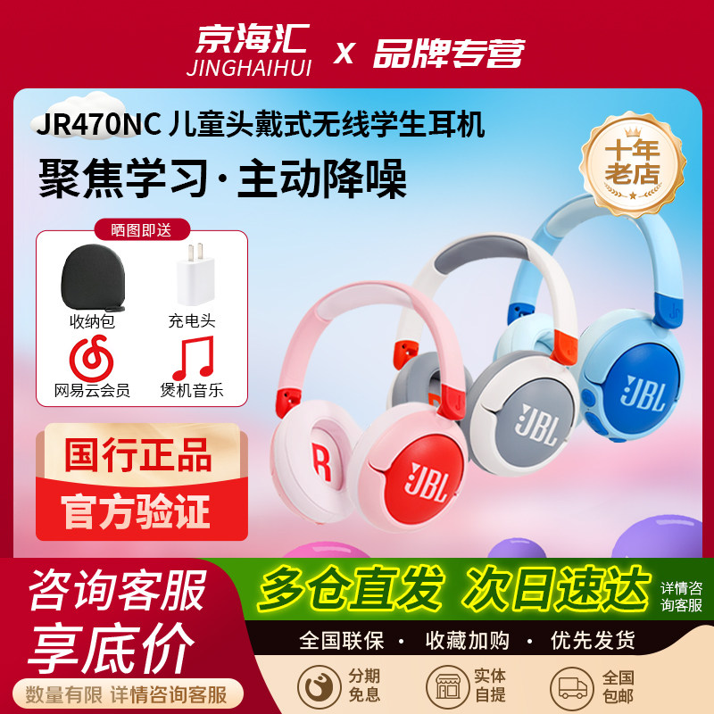 JBL JR470NC 头戴式儿童耳机降噪蓝牙保护听力学生学习上网课帮手