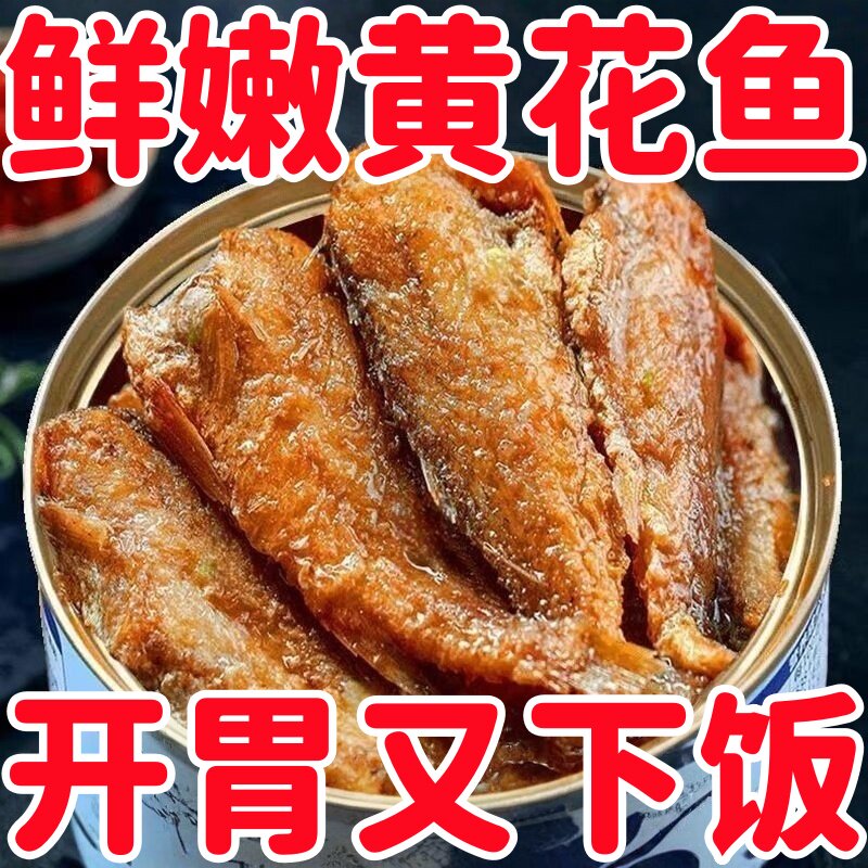 买一发四罐】香酥小黄鱼海鲜海味零食香辣即食五香黄花鱼罐头小吃