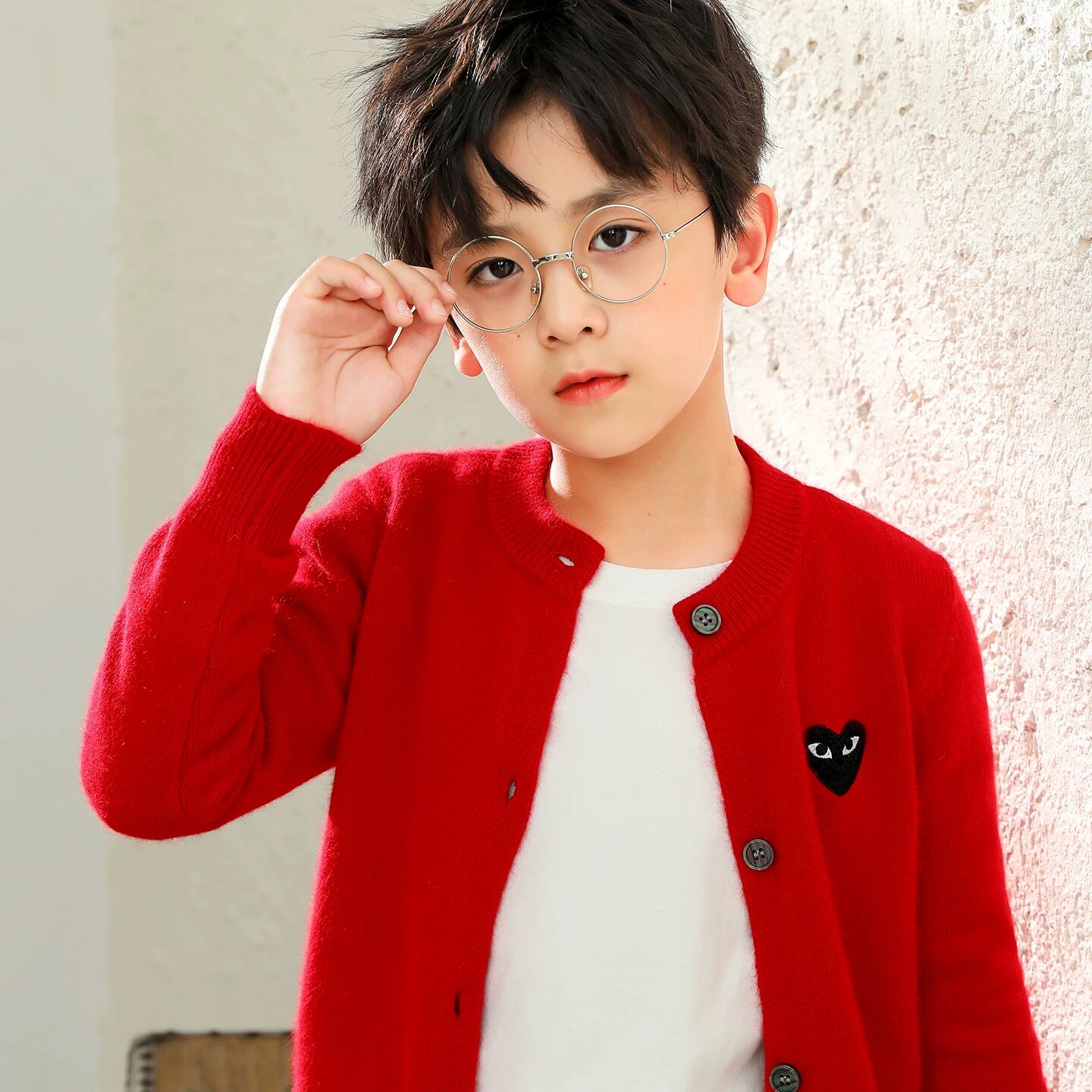 纯羊绒衫2025儿童男女童100%开衫软糯保暖爱心刺绣针织外套不起球