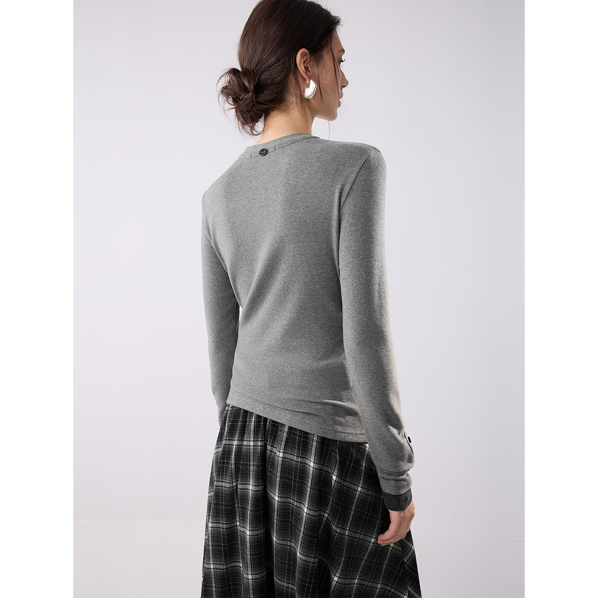 三福长袖上衣女2025新款秋冬季圆领内搭打底衫修身白色t恤女装