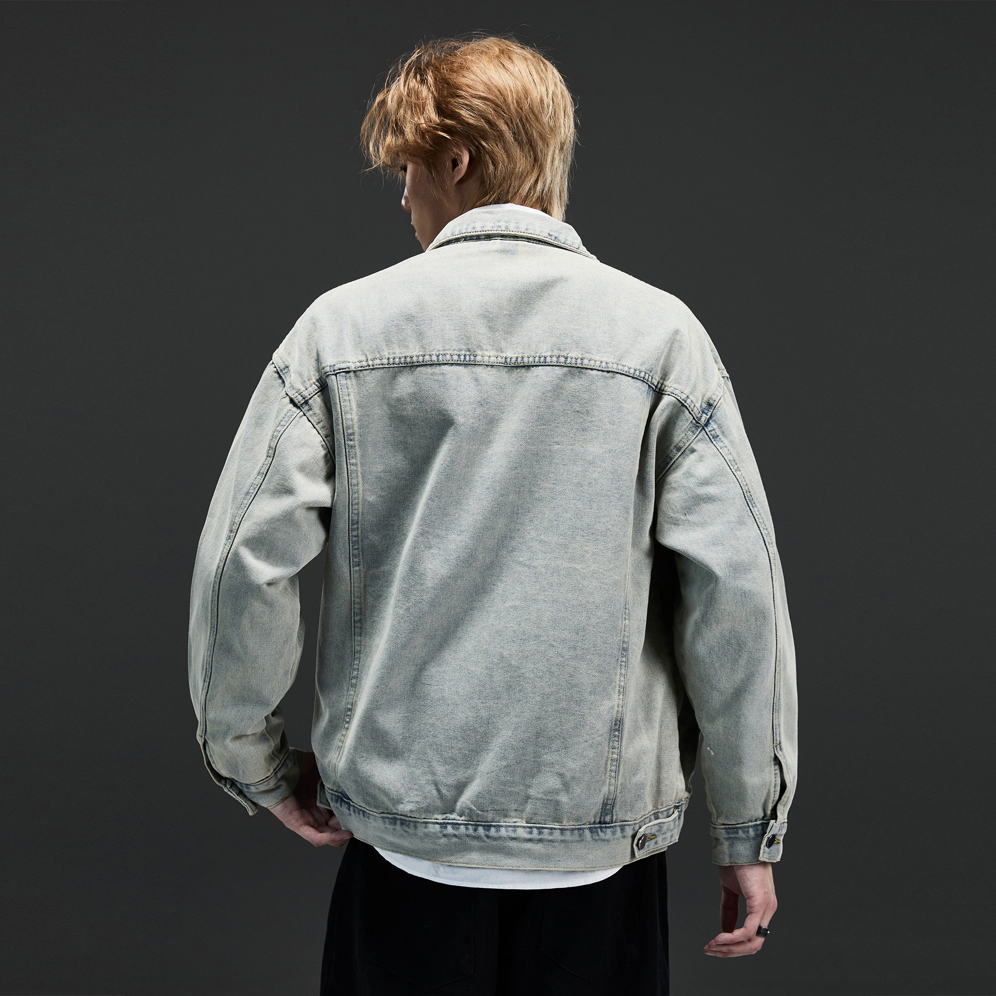 Wassup Shark美式牛仔外套男春秋季复古工装休闲夹克百搭翻领上衣