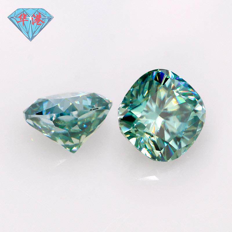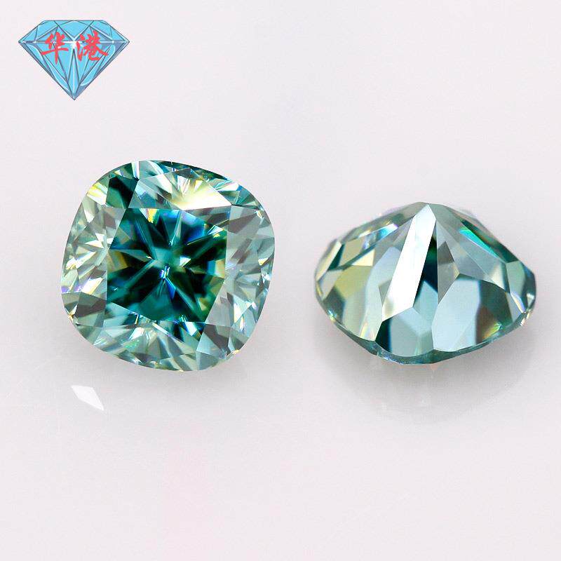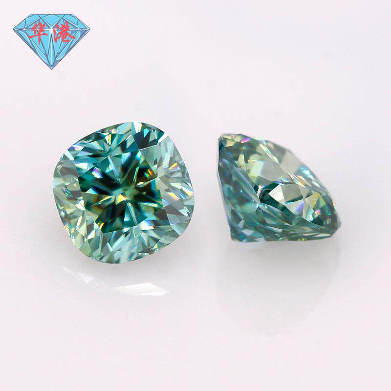 华港宝石 肥正方枕形蓝莫桑石裸石戒面 莫桑钻裸钻手饰人工