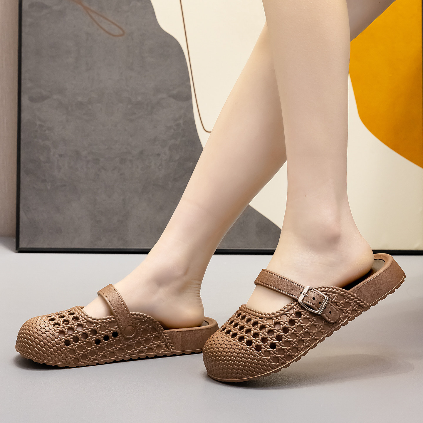 26夏季新一脚蹬复古鞋女厚底包头半凉拖鞋妈妈外穿平底单鞋女休闲