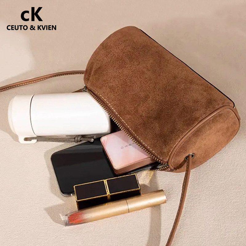 CEUTOKVIEN2026新款时尚休闲水桶包复古高级圆筒包单肩斜跨女包