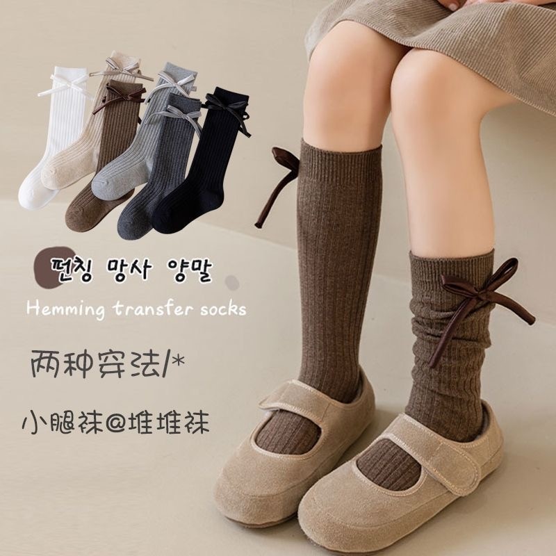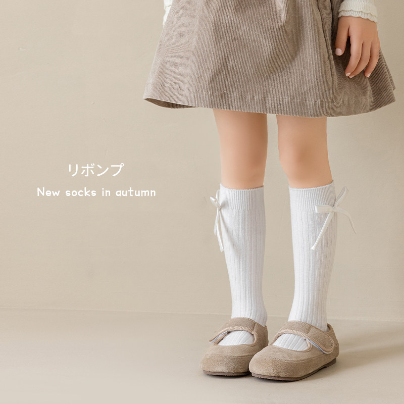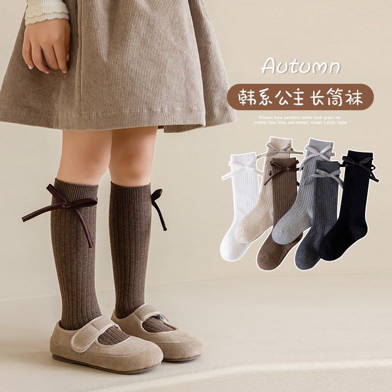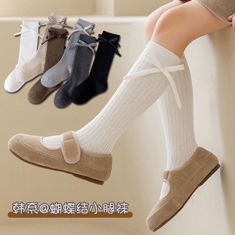 女童袜子纯棉春秋薄款儿童公主风蝴蝶结中筒袜韩系洋气宝宝长筒袜
