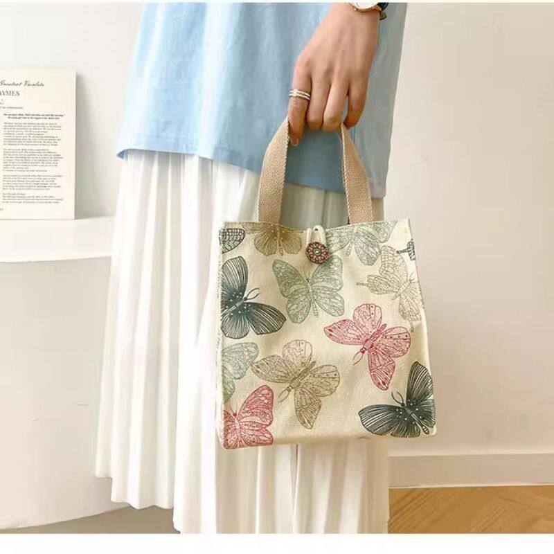 帆布手提包小巧百搭上班族便当包新款学生大容量饭盒袋简约手提袋