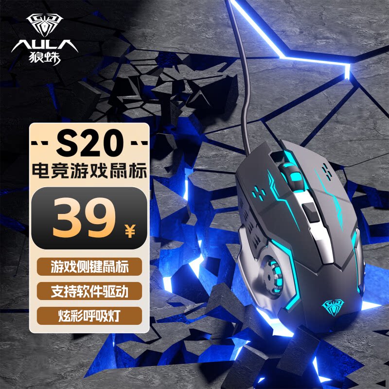 狼蛛S20游戏鼠标有线电竞吃鸡LOL宏编程办公电脑台式机笔记本通用