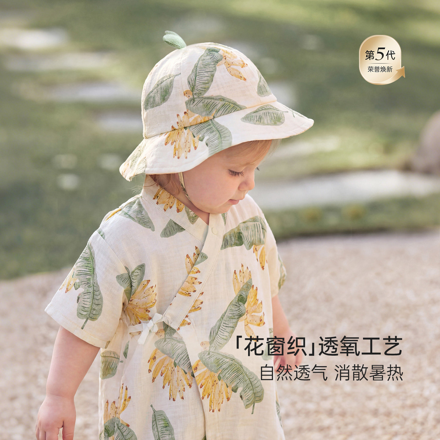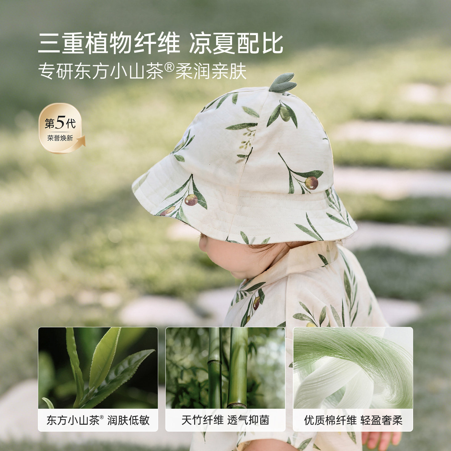 babylove啵啵水果茶帽子婴儿夏季竹棉山茶纱布渔夫帽户外遮阳帽