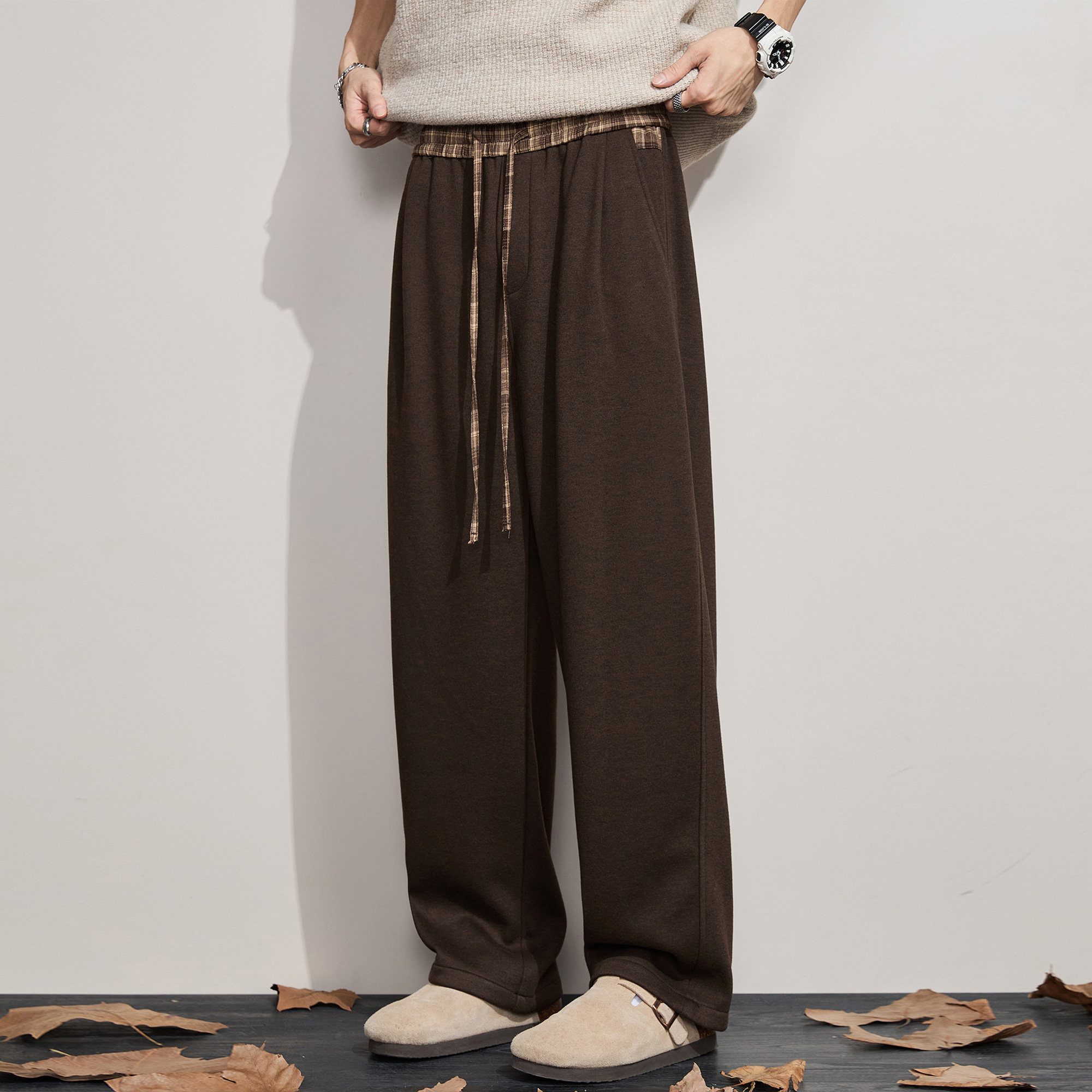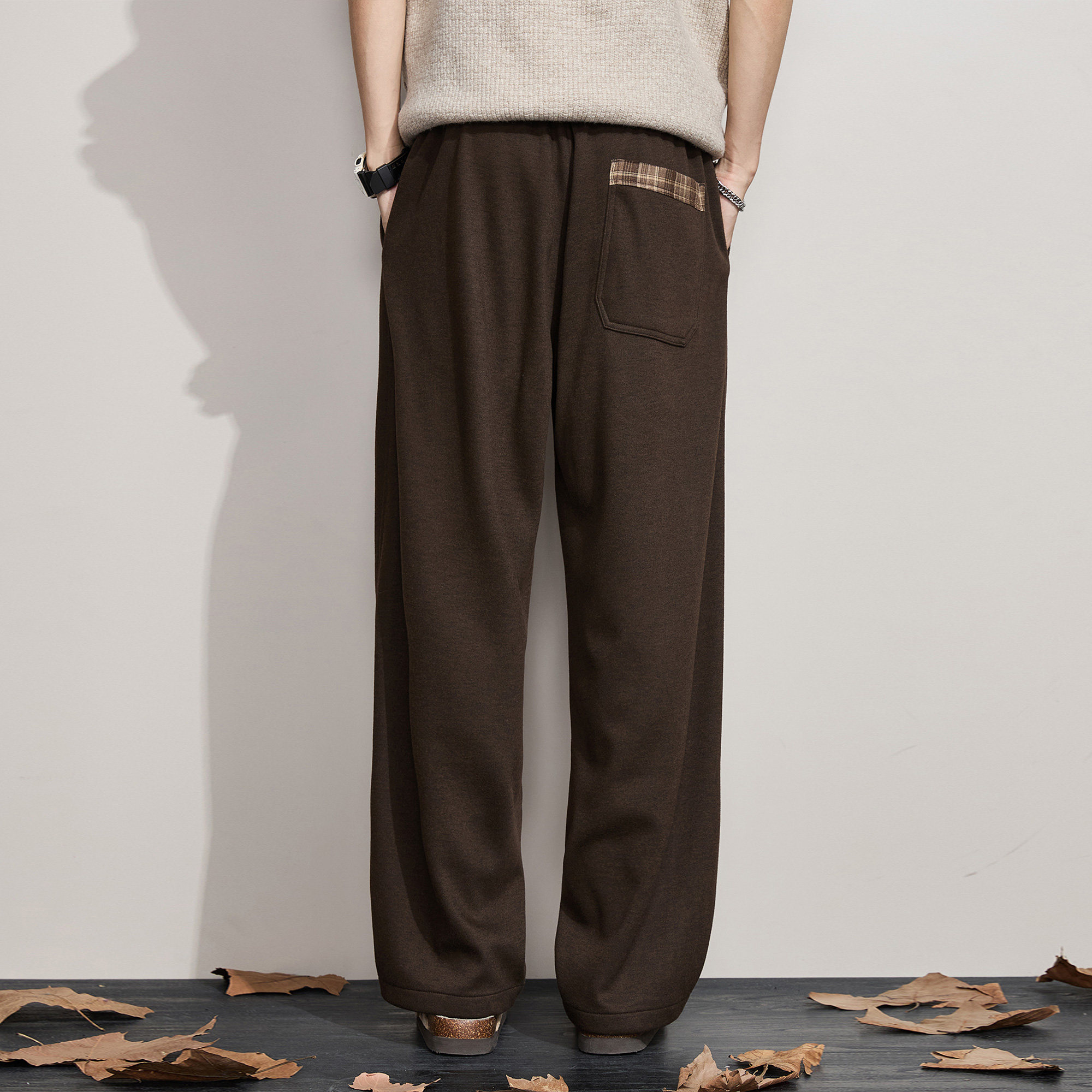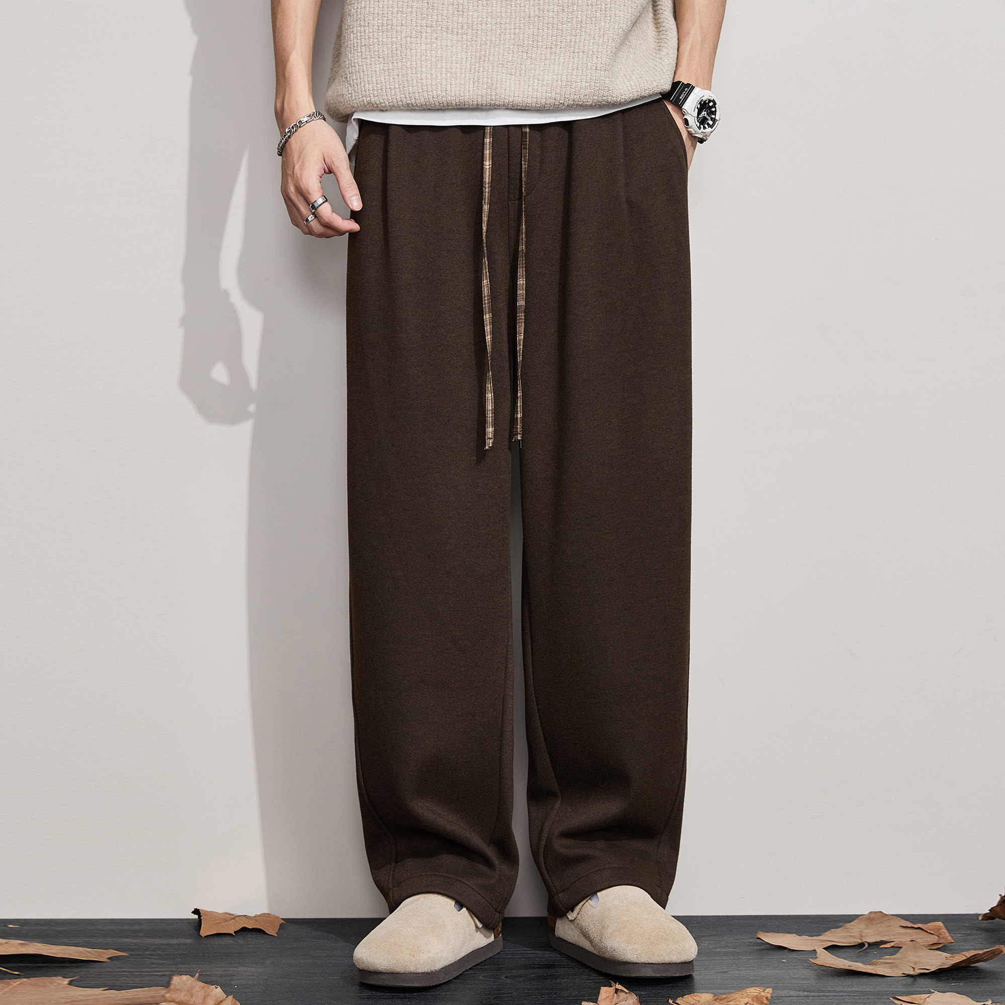 ALLIN 垂感廓形宽松休闲裤子男秋冬加绒加厚含绵羊毛阔腿直筒长裤
