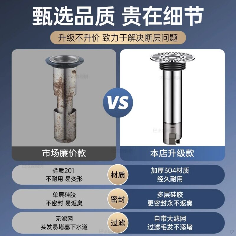 地漏加厚不锈钢防臭五金过滤芯卫生间阳台全铜下水道洗衣机浴室