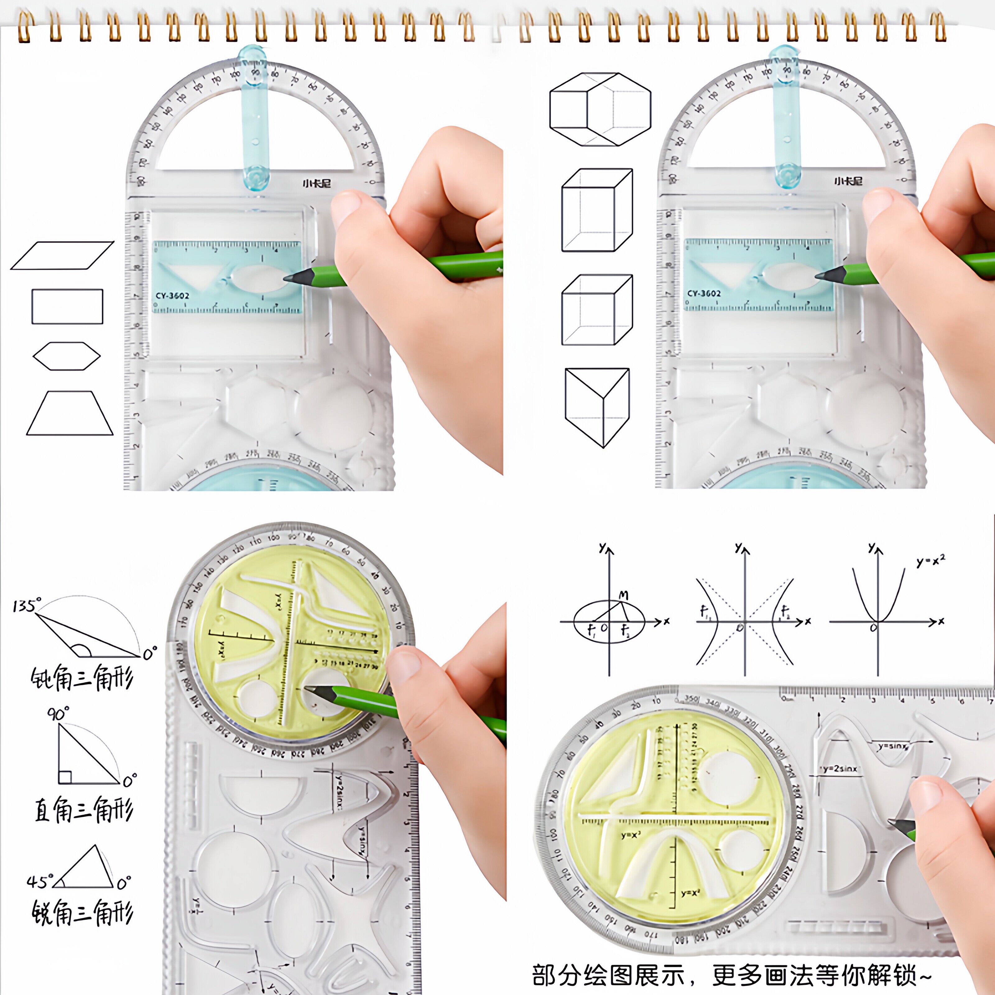 小学生多功能活动角绘图尺初中高中函数平面图形几何尺画角量角器