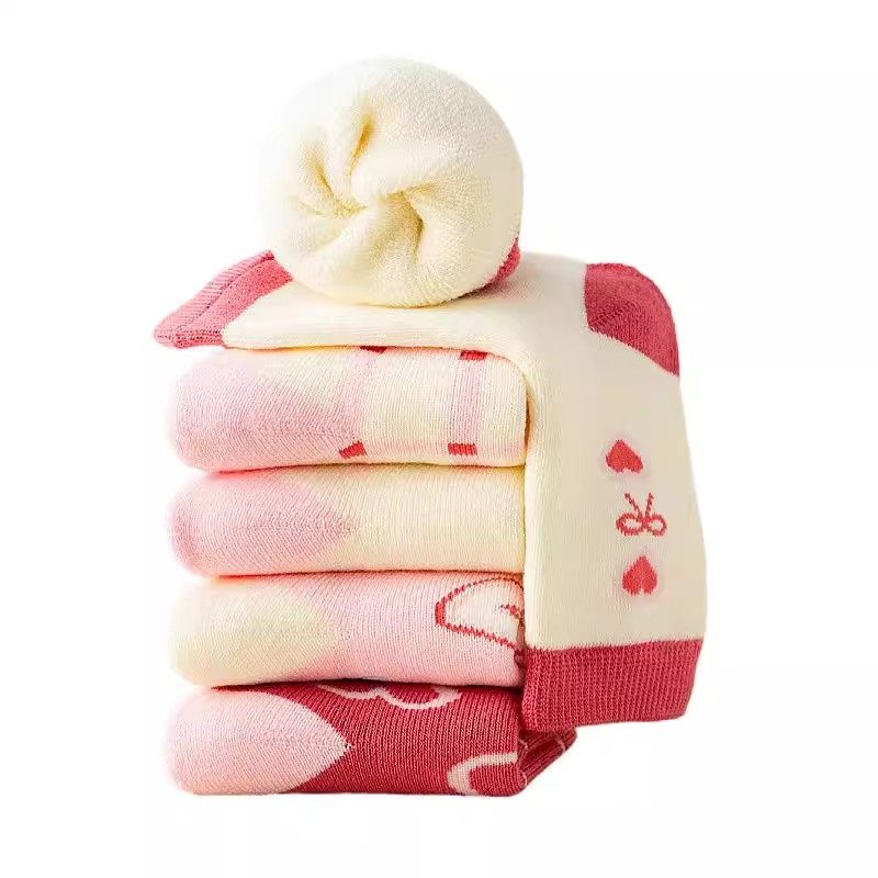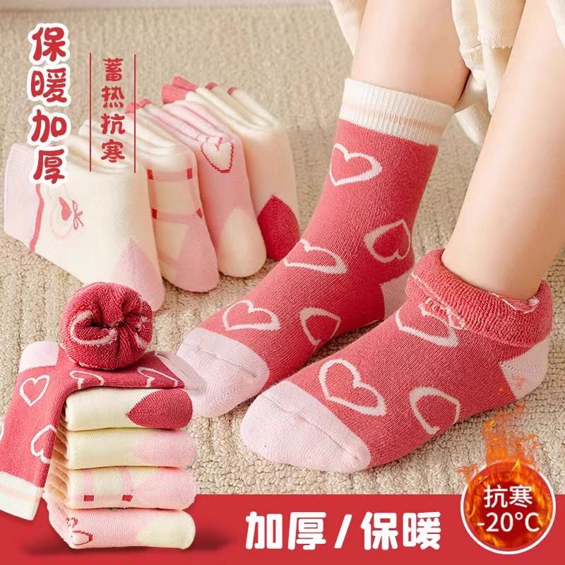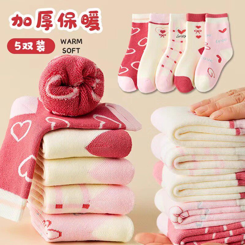女童袜子秋冬季粉色可爱女孩儿童中筒袜毛巾袜保暖加厚加绒毛圈袜