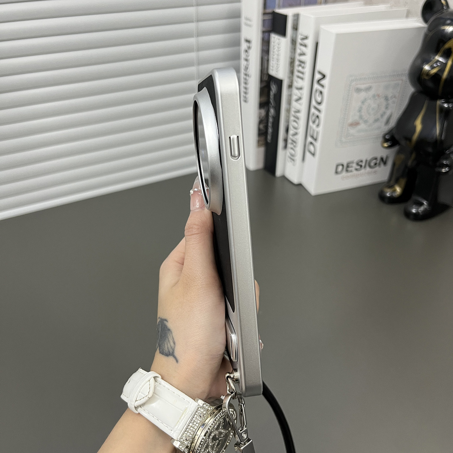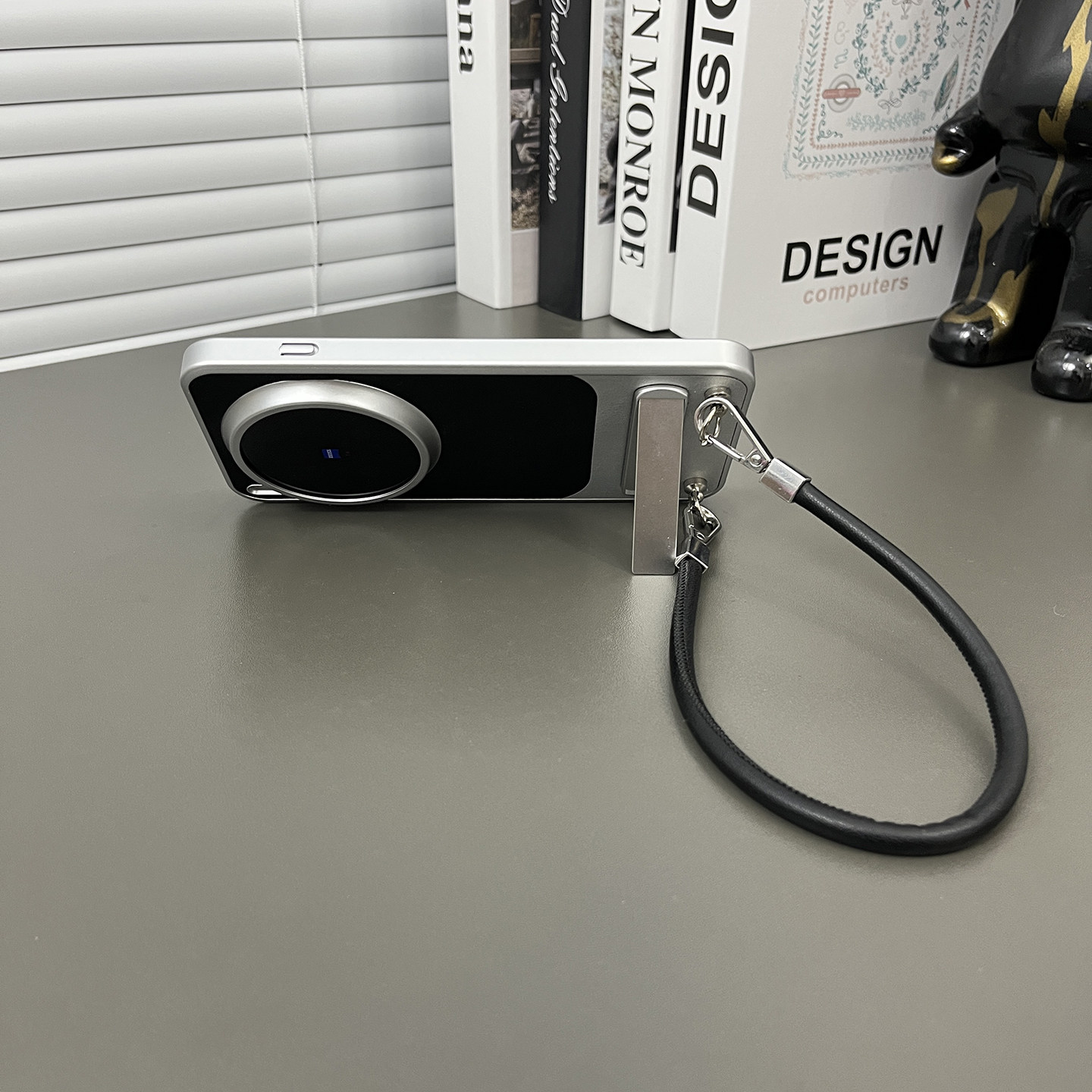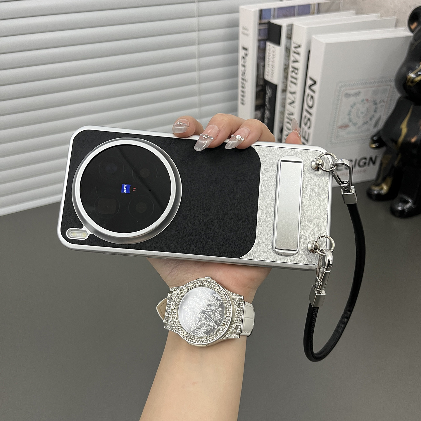 三只鱼【网红素皮纹石墨黑手提绳】适用于vivox300pro/x200ultra手机壳新款个性高档防摔半包保护套男女商务