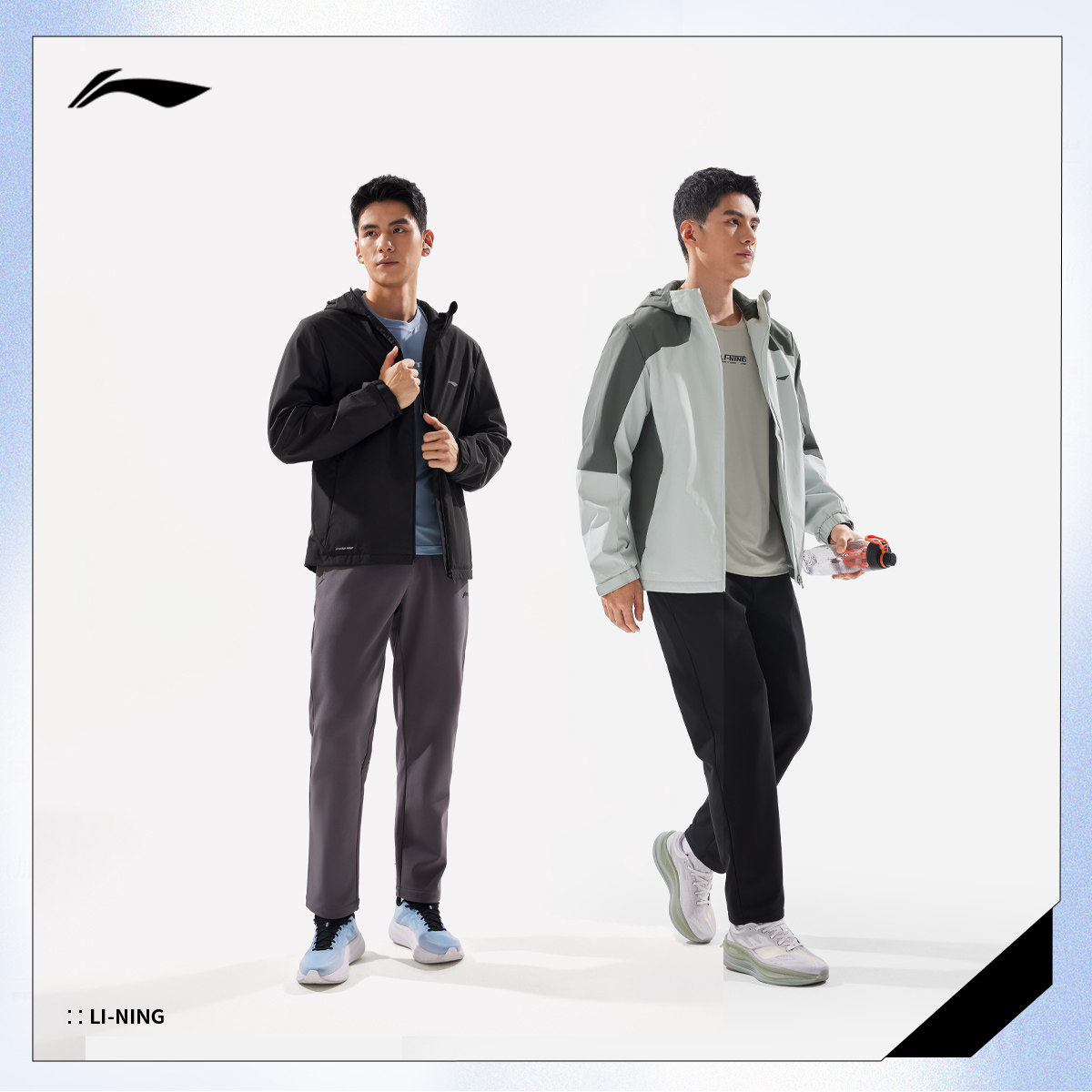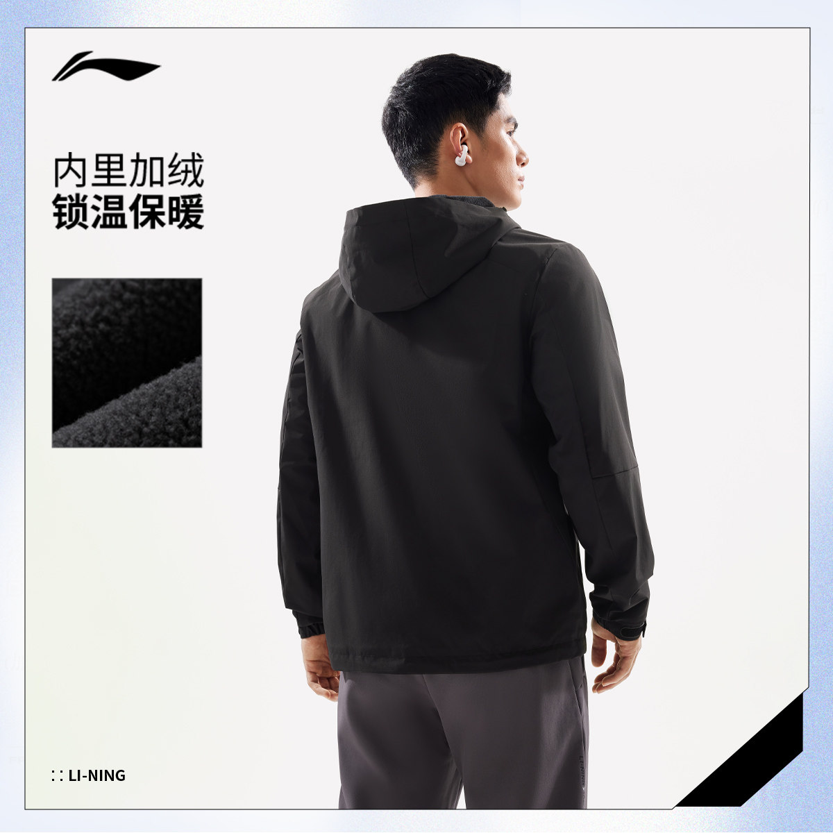 李宁风衣男士新款连帽外套开衫秋冬加绒保暖梭织运动服百搭上衣