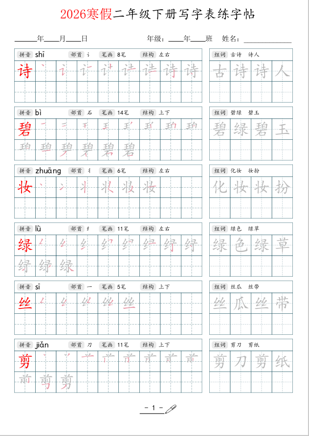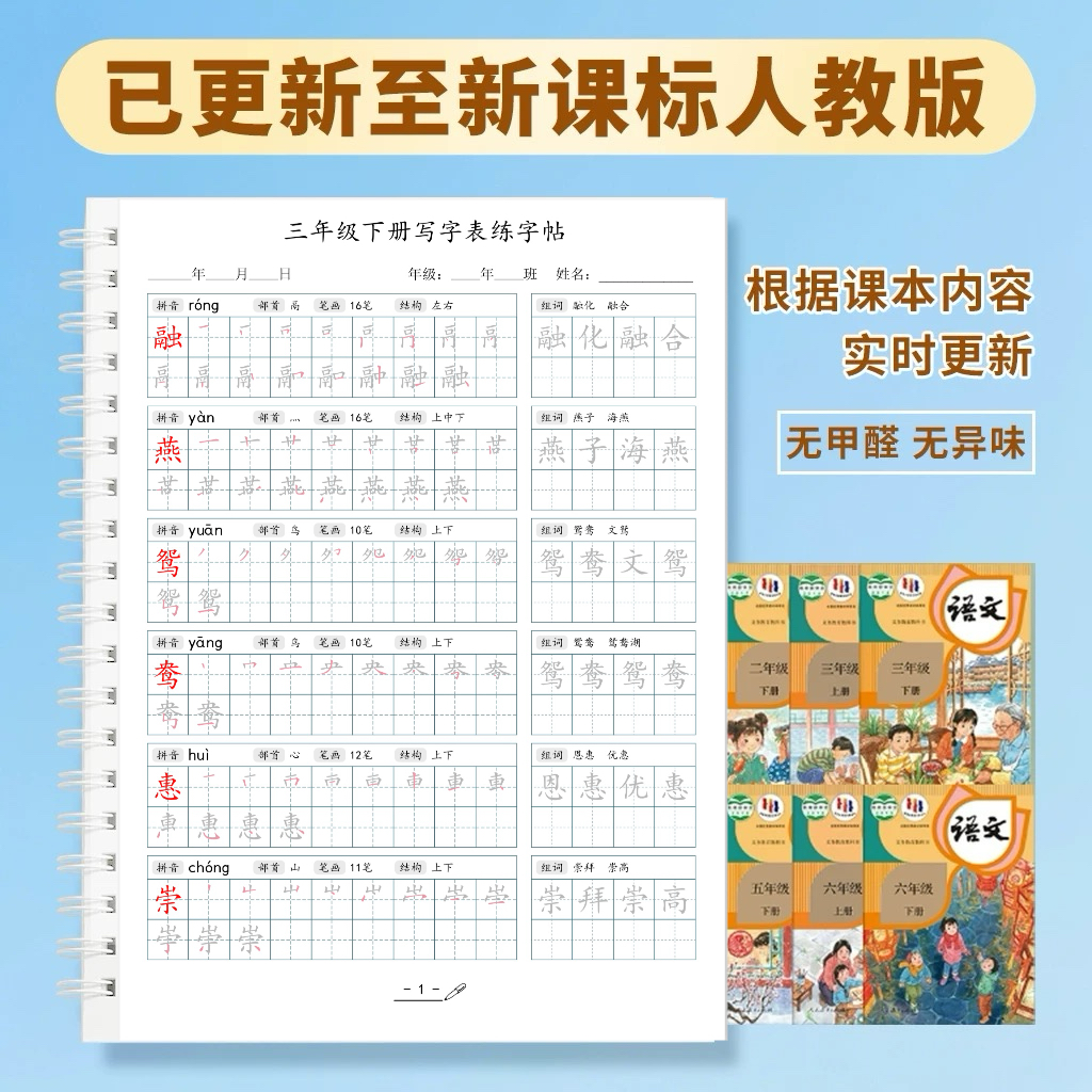 2026春三年级下册语文同步生字组词写字表笔顺拼音部首练字帖