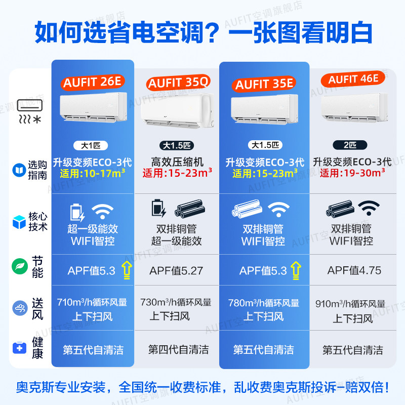 AUFIT空调奥克斯出品1.5匹1/2匹挂机3匹立式柜机一级能效冷暖变频