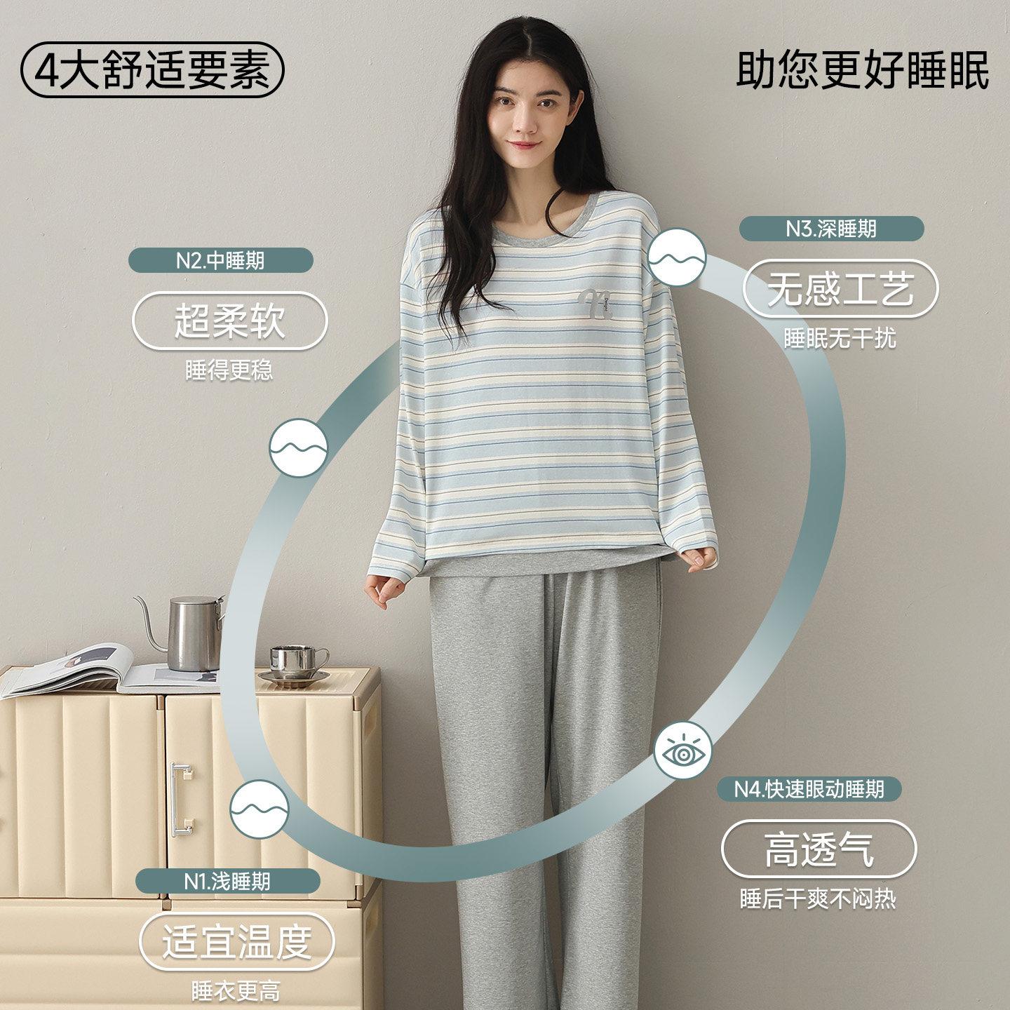 亚朵星球深睡睡衣睡裤家居服套装女款长袖带胸垫2025新款秋冬衣裤