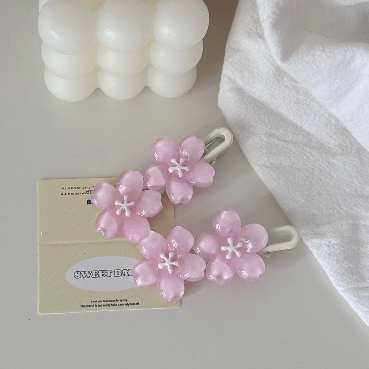 果冻粉色樱花发夹高颜值甜美高级感少女刘海侧边发卡饰品发饰批发