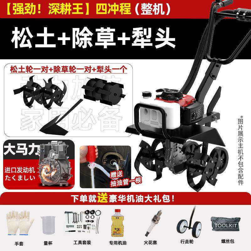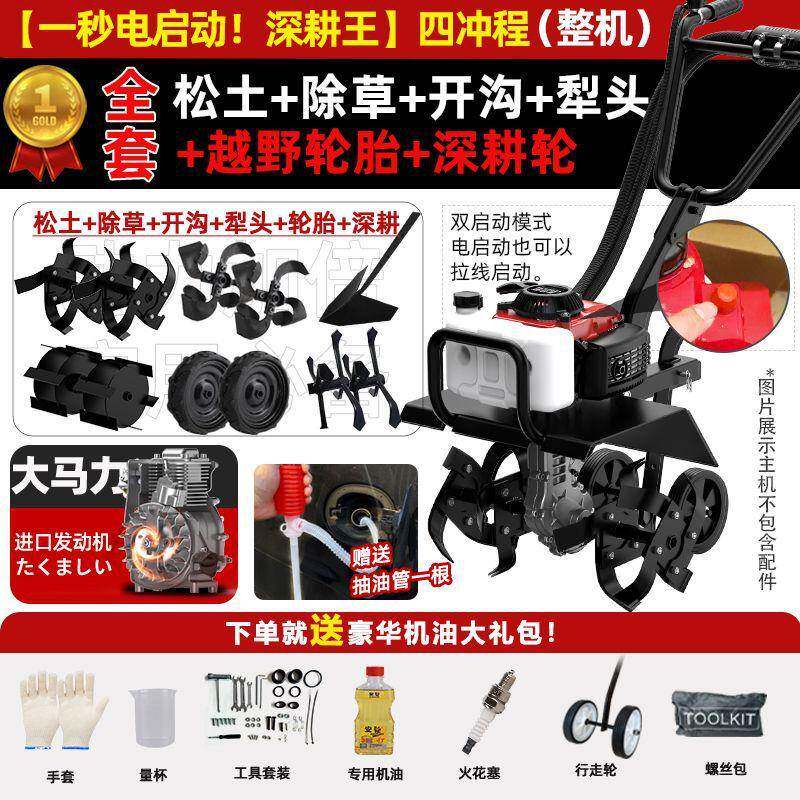 小坦王四冲程微耕机小型农用四驱旋耕机松土犁地开沟汽油耕地锄草