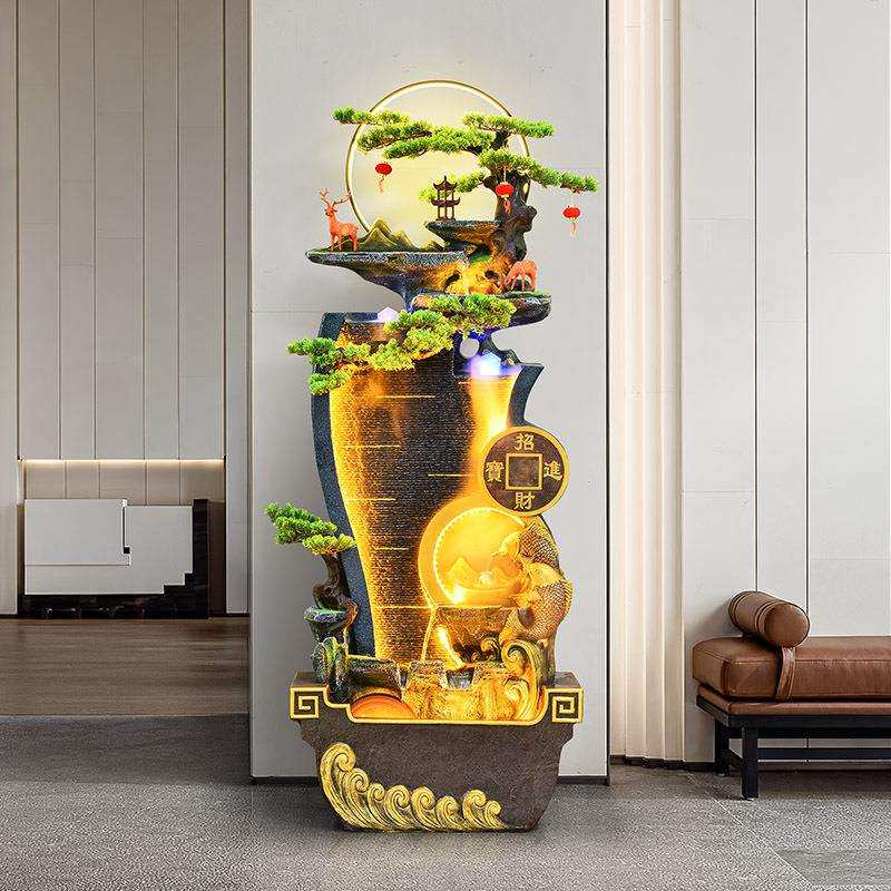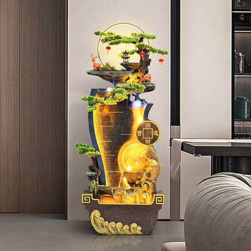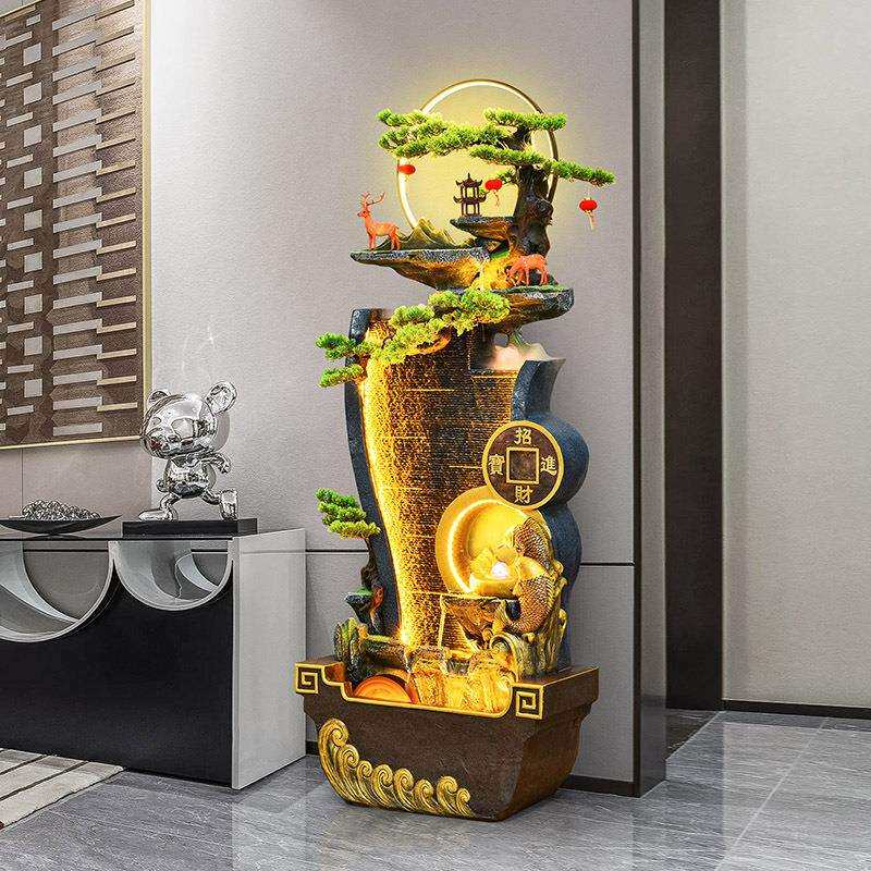 假山客厅现代办公室流水玄关创意摆件别墅鱼池招财装饰落地加湿器