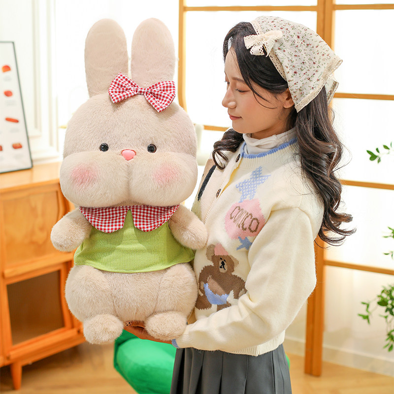 卡通穿衣团团兔毛绒玩具公仔可爱蝴蝶结领结造型玩偶娃娃儿童礼物