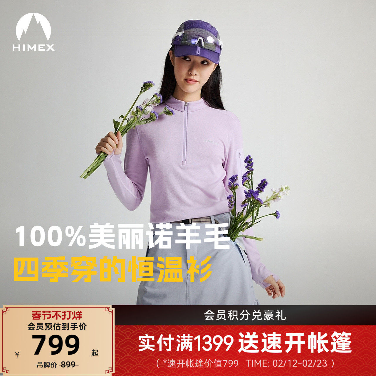 【商场同款】探路者功能T恤户外吸湿透气保暖美丽诺羊毛长袖男女