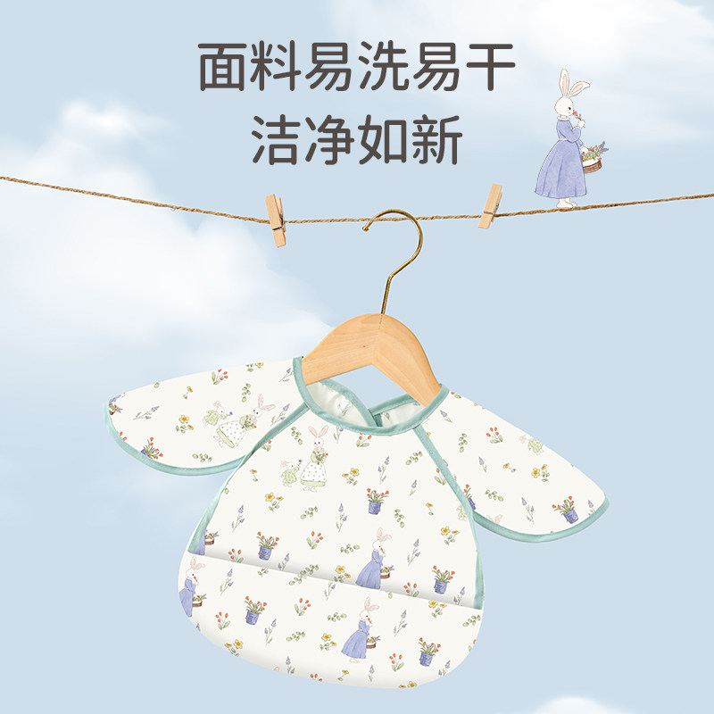 婧麒宝宝防水罩衣婴幼儿围嘴风短袖反穿衣透气衣儿童吃饭围兜饭兜