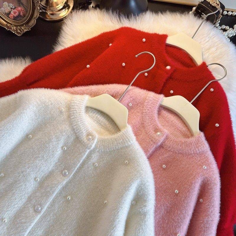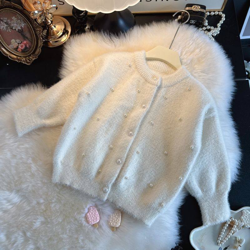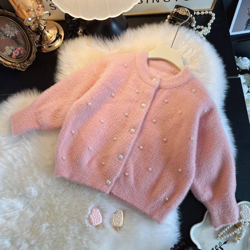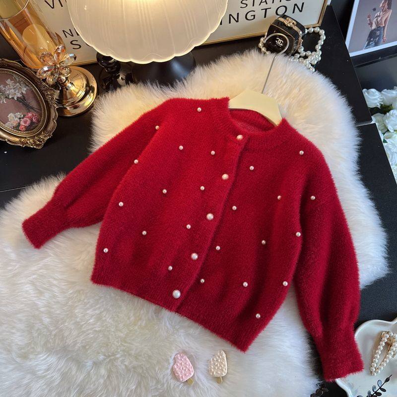新年女童开衫毛衣水貂绒外套2026秋冬童装女宝宝毛毛上衣红色白色