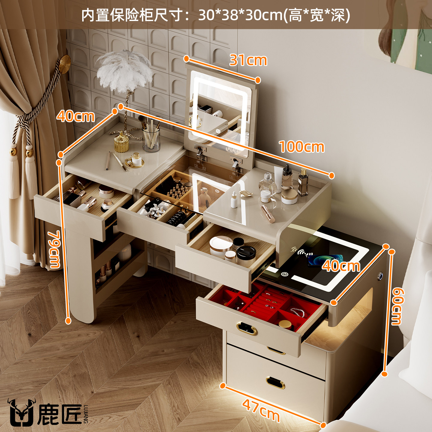 鹿匠隐藏式保险箱2026新款小智智能AI大型梳妆台保险柜一体式1米宽防盗隐形搬不走化妆桌卧室家用床头保险柜