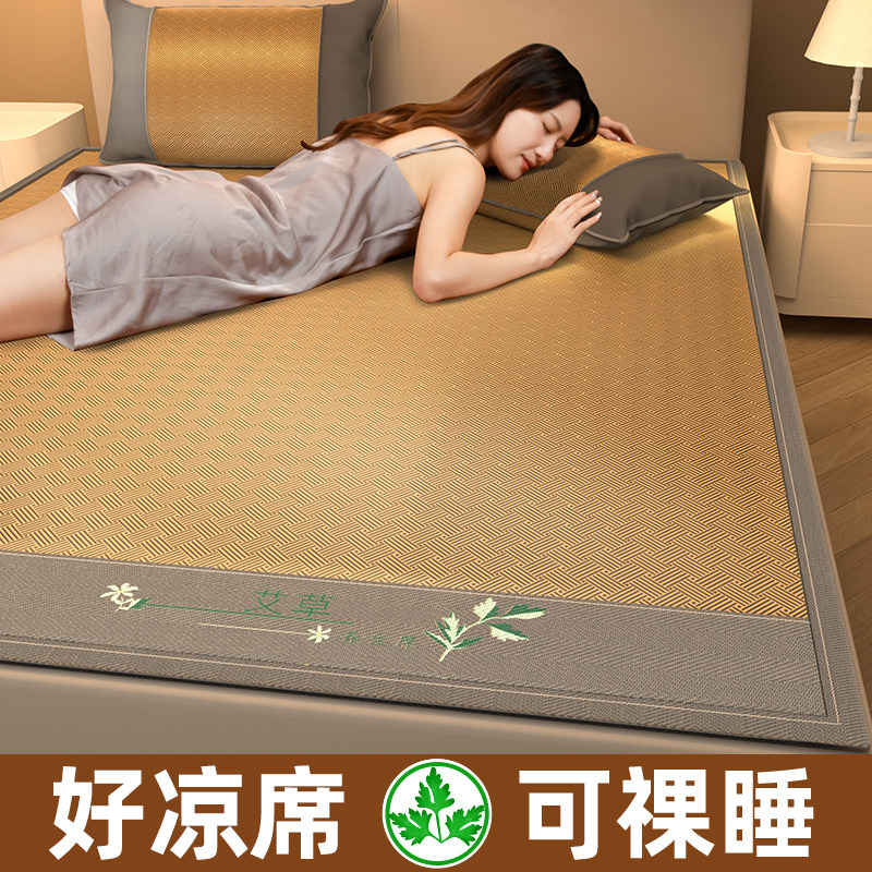 艾草加厚2025新藤席子凉席双人可折叠冰丝席竹席单人学生宿舍夏天