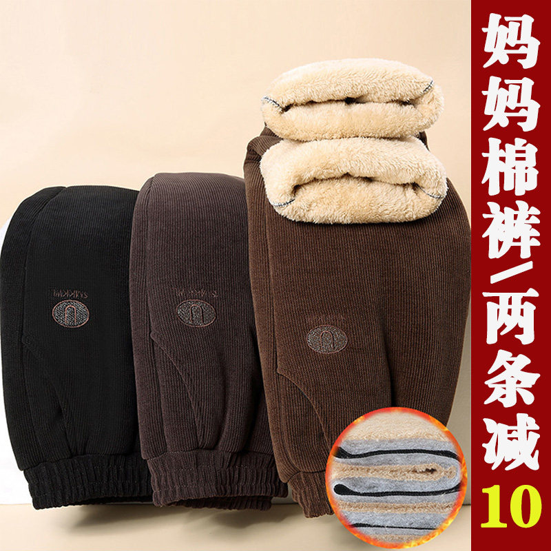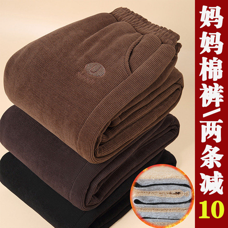 妈妈棉裤女秋冬外穿加绒加厚灯芯绒宽松大码中老年人奶奶裤子保暖