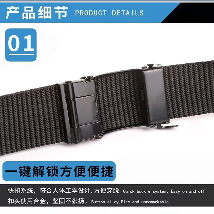 对插扣弹力皮带男自动扣时尚百搭潮流男士腰带户外尼龙帆布裤腰带