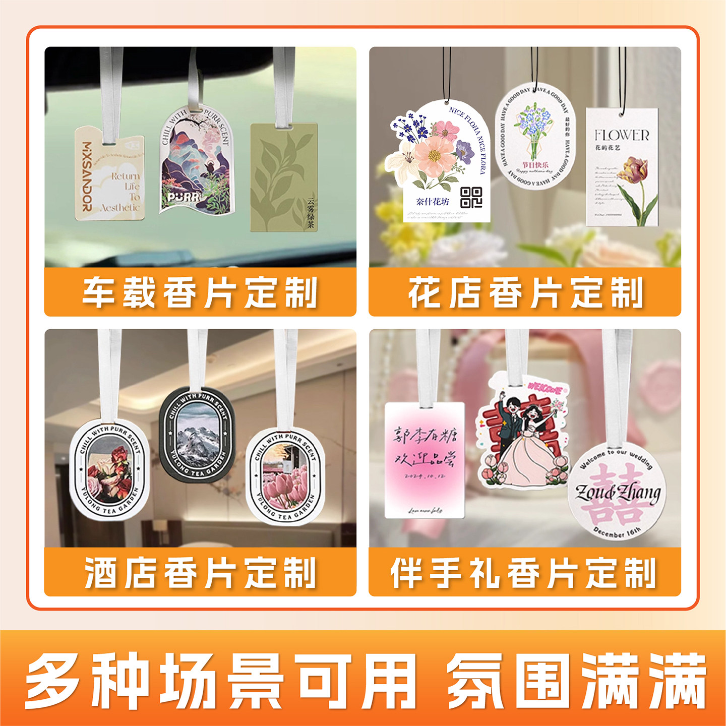 异形车载香片定制香水持久留香卡汽车挂饰香薰片衣柜吊牌logo扩香卡片留香纸质香氛卡伴手礼酒店周边书签挂件