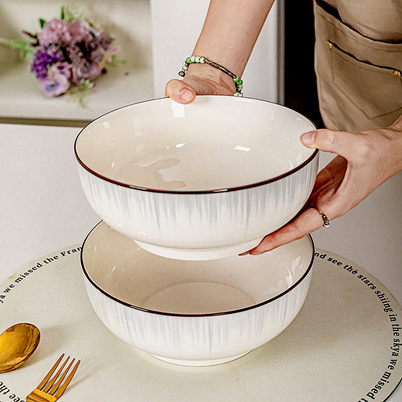 奶油风陶瓷碗家用卡通菜盘子可爱米饭碗汤碗釉下彩儿童餐具耐高温