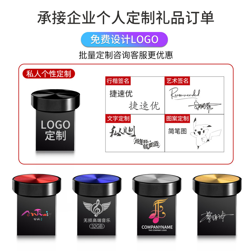 捷速优正品大容量USB迷你车载金属u盘定制刻字行车记录仪手机优盘