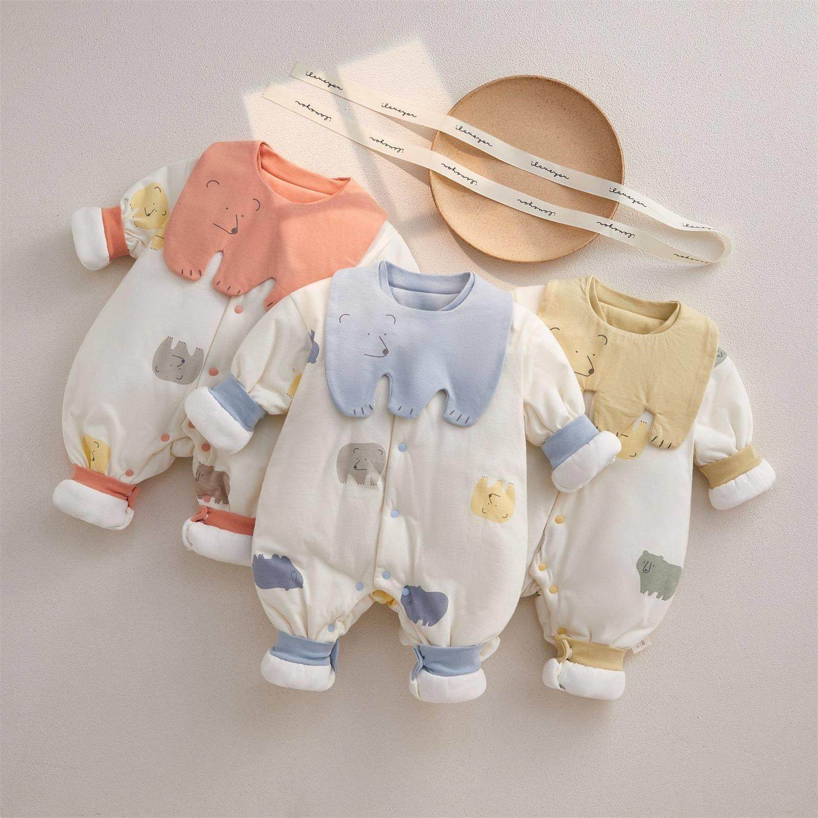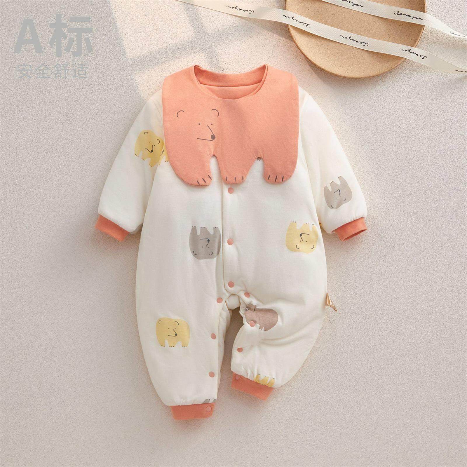 婴儿夹棉连体衣秋冬款新生儿衣服宝宝保暖冬季春秋加厚哈衣爬爬服