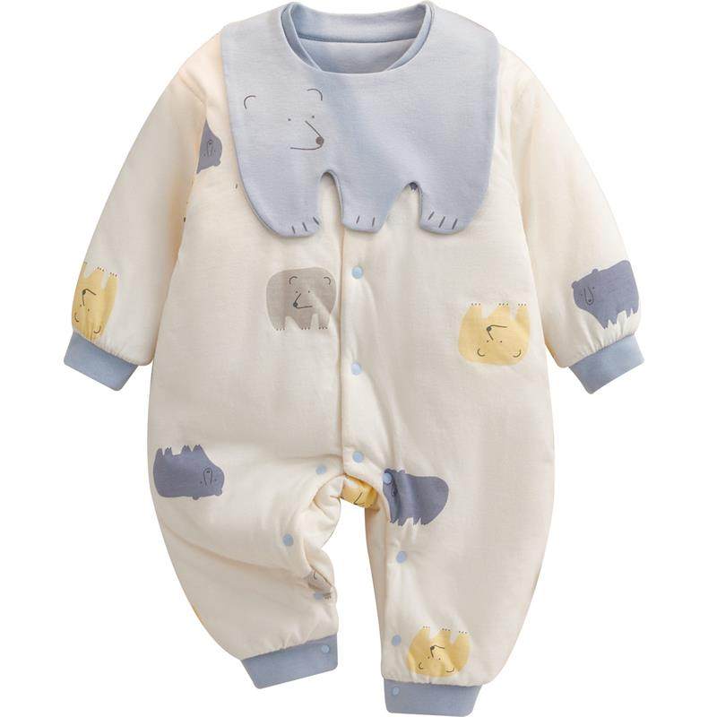 宝宝保暖连体衣秋冬款新生儿夹棉哈衣爬服男女婴幼儿加厚睡衣冬装
