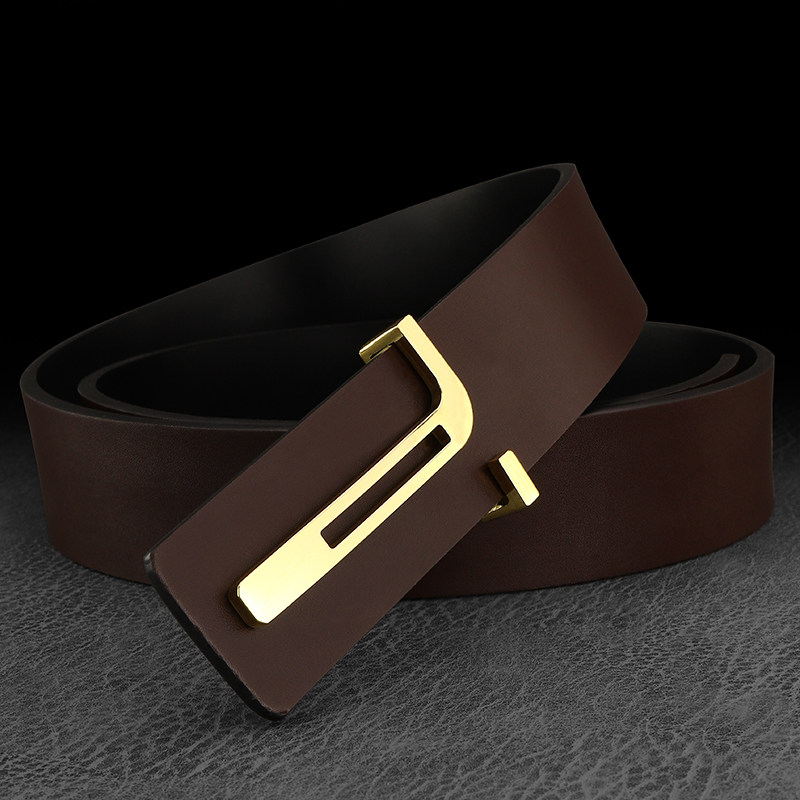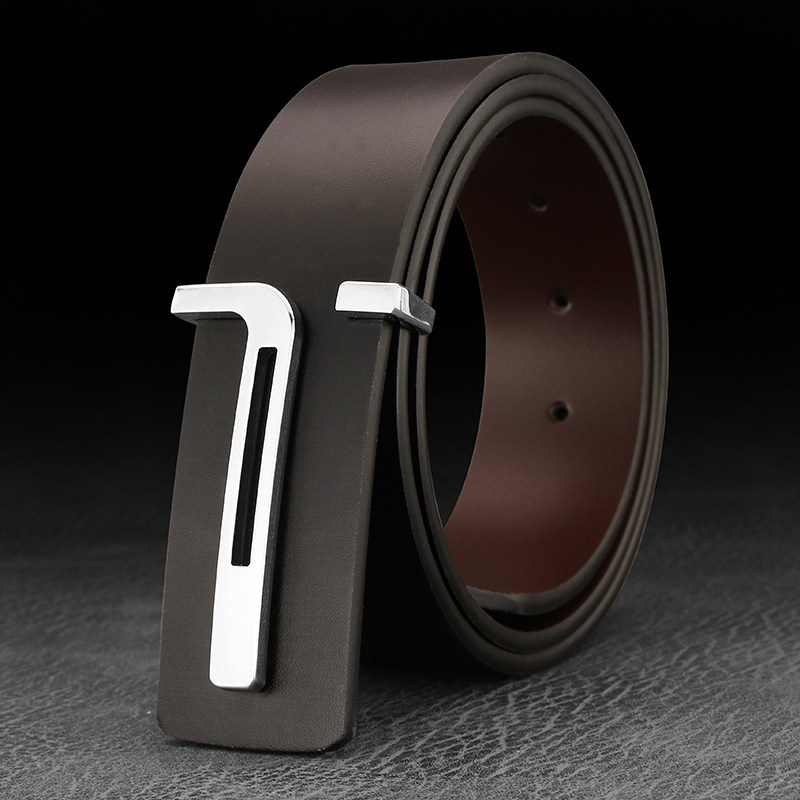 爱马女仕新款T字母皮带男士真皮平滑扣简约腰带男潮流年轻人裤带
