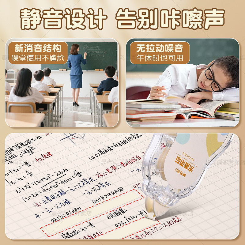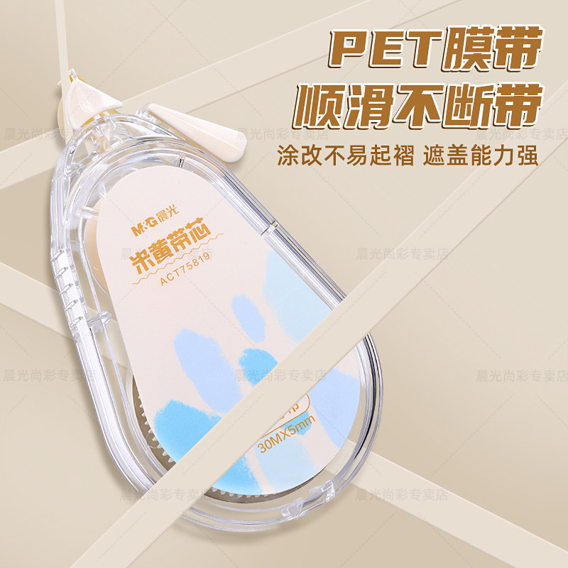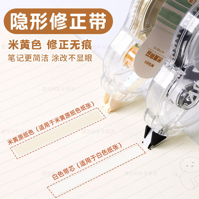晨光原纸色米黄色修正带隐形修正带初中生专用修改带学生专用护眼色黄色涂改带大容量静音修正带改错带耐摔