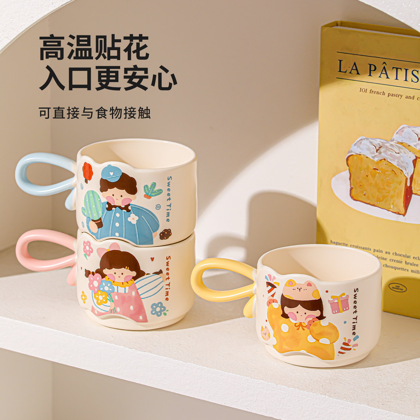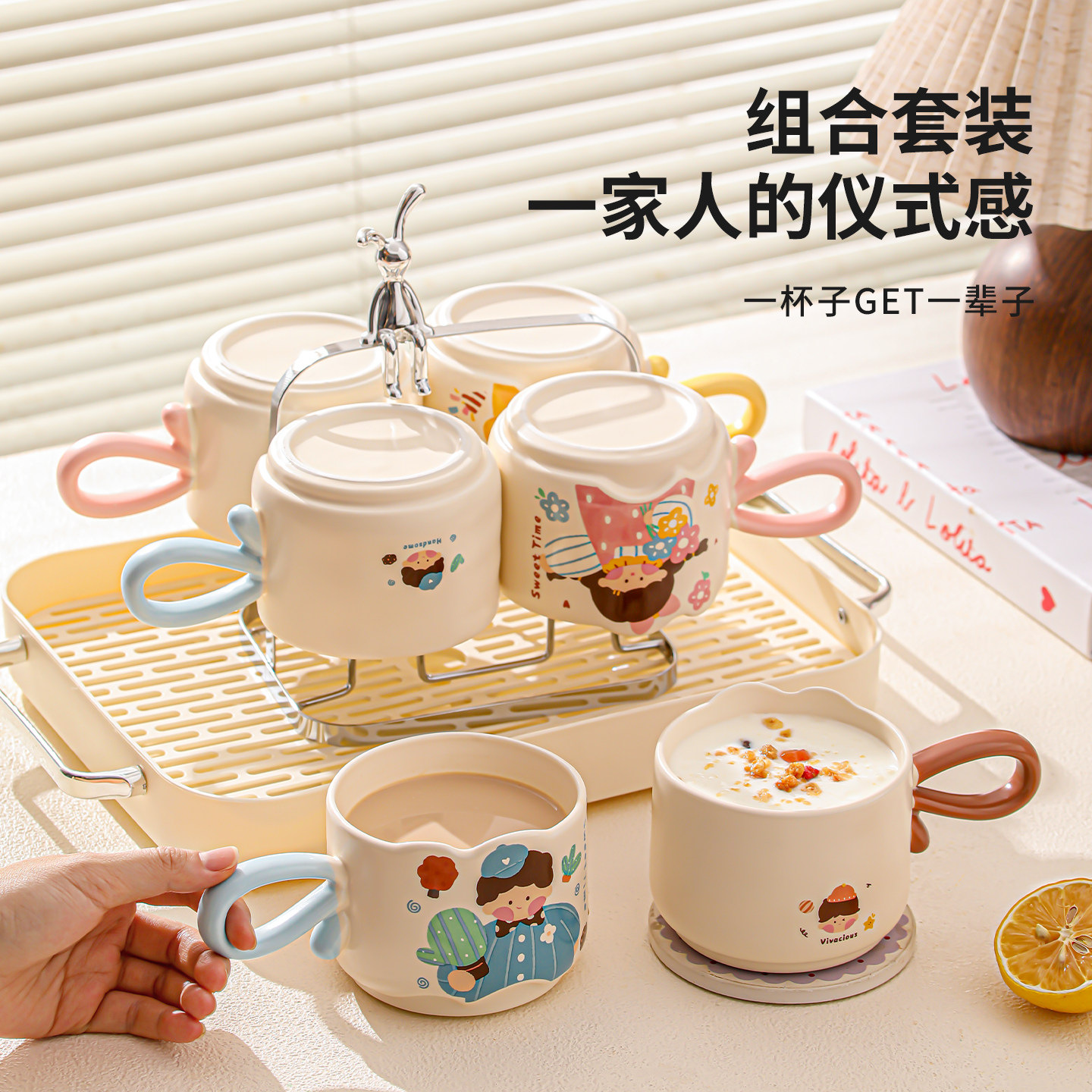 一家三四口马克杯儿童杯子家用亲子水杯套装可爱牛奶杯情侣陶瓷杯