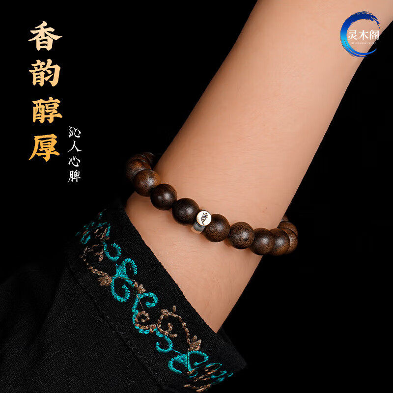 天然文莱沉香手串十二生肖本命佛转运珠文玩款生肖马手链紫檀