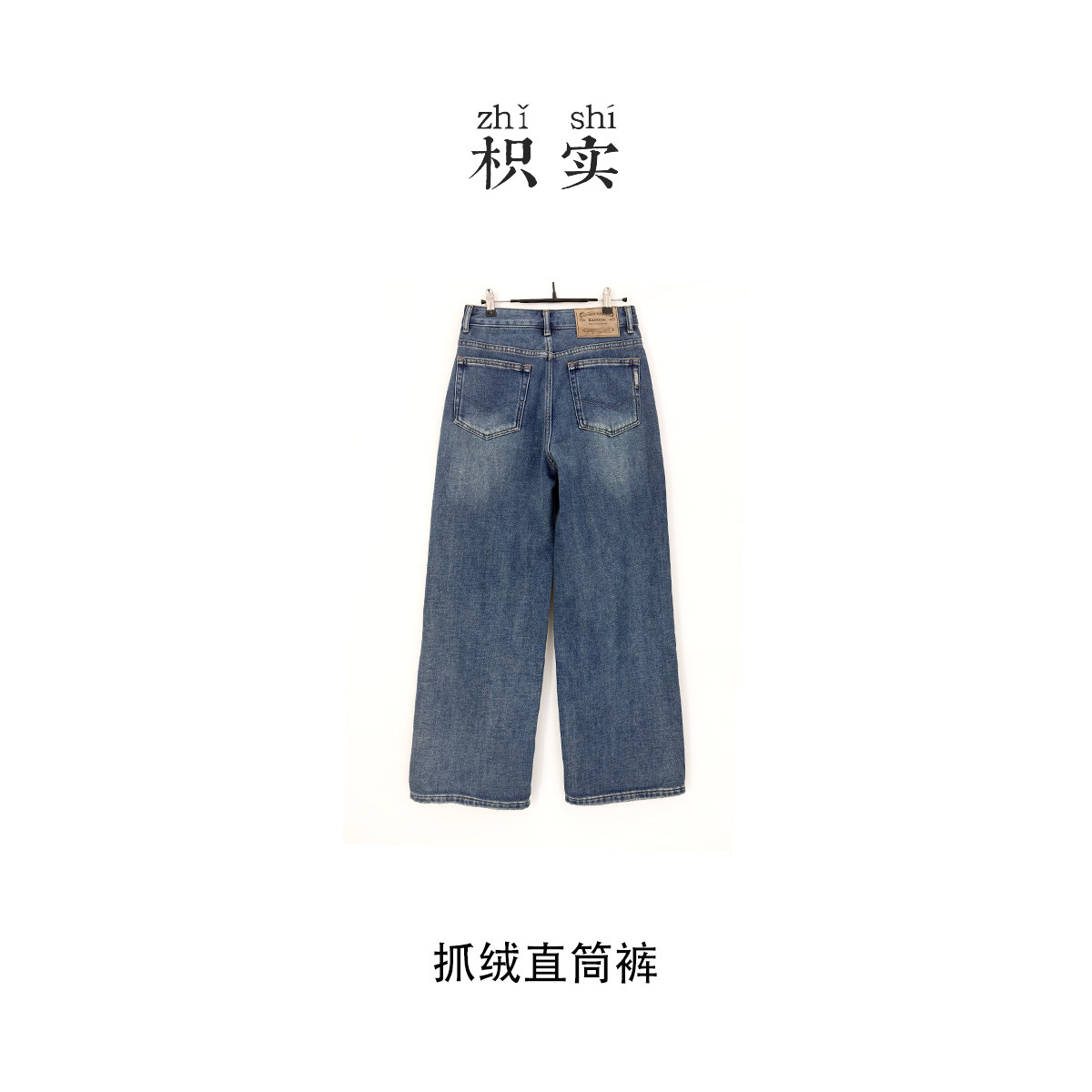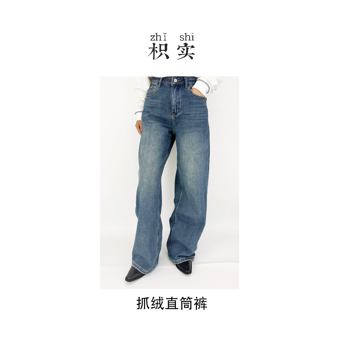 复古加厚抓绒直筒阔腿牛仔裤女宽松显瘦秋季新款棉舒适
