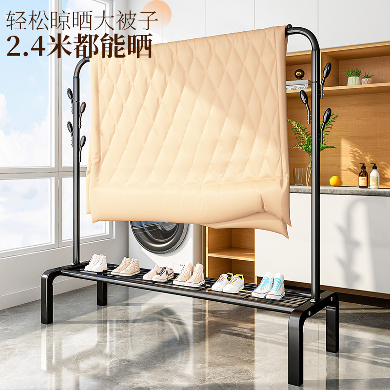 加粗加厚晾衣架落地折叠家用阳台卧室内简易可移动凉晒衣服被子杆