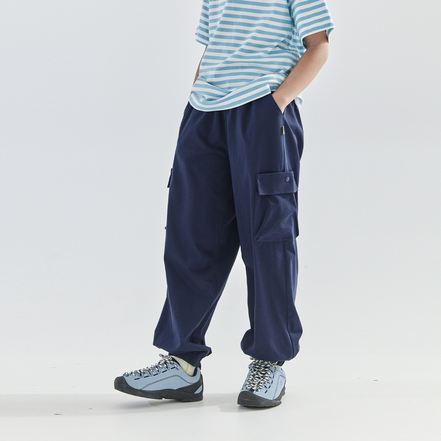 罗蒙儿童卡其色校园服裤子男童松紧西裤小学生加绒女童藏青运动裤
