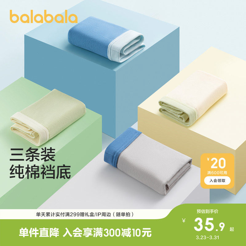 【balaOne】巴拉巴拉儿童内裤棉男童不夹pp抗菌裆四角短裤三条装