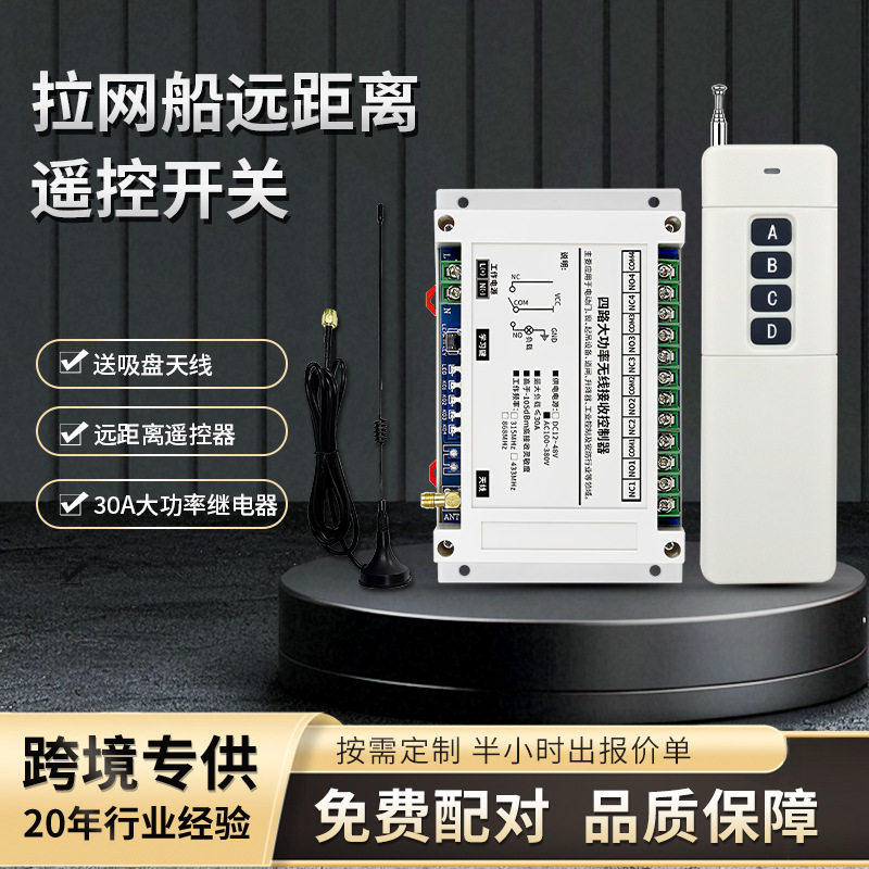 30A大功率水泵遥控开关消防泵无线遥控器打窝船拉网船远程控制器