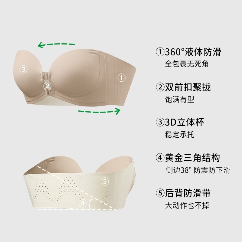 埃茉前扣抹胸内衣无痕女防滑聚拢防下垂薄款裹胸无肩带文胸隐形